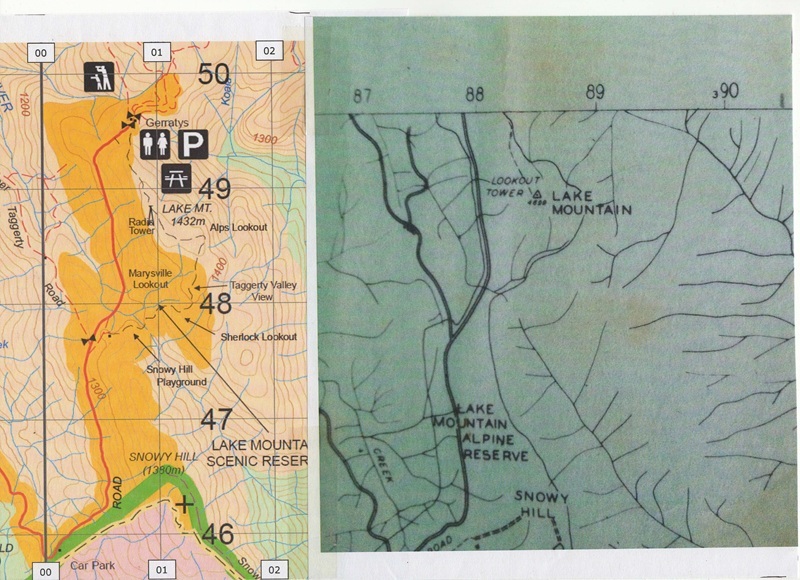 | Lake Mountain tower shown on a few old maps |